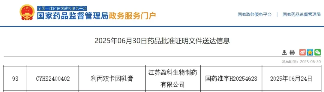 近期,欧博abg生物科创成功助力江苏盈科生物制药有限公司(以下简称“盈科生物”)申报的利丙双卡因乳膏获批上市(批准文号:国药准字H20254628)。