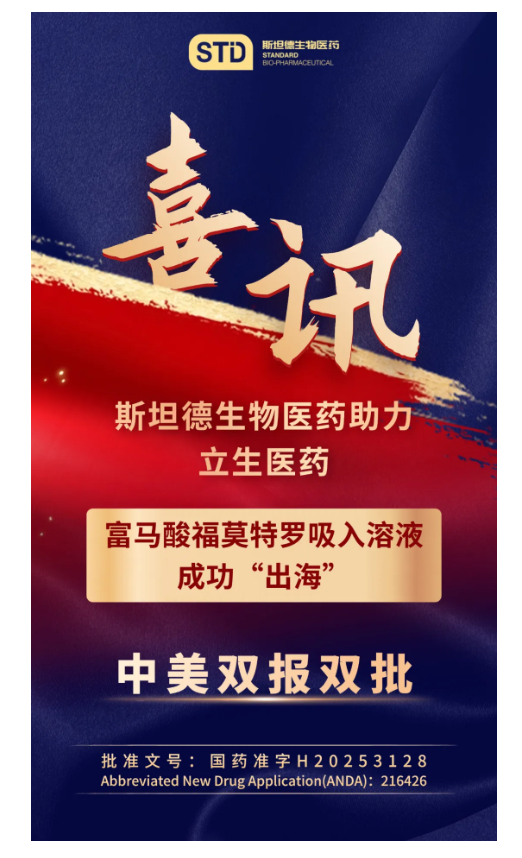 近期,欧博abg生物科创医药科技(青岛)有限公司成功助力立生医药(苏州)有限公司(以下简称“立生医药”)生产的富马酸福莫特罗吸入溶液成功取得国家药监局(NMPA)批准上市。此前,该药已取得美国食品药品监督管理局(FDA)的批准上市,实现了中美双报双批。